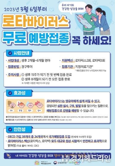 보건소 관계자는 “로타바이러스는 소량의 바이러스로도 쉽게 감염될 수 있는 만큼 일상 속 위생 관리가 무엇보다 중요하다”며, “특히 2023년부터 백신이 국가 필수 예방접종에 포함돼 전국 지정 의료기관에서 무료 접종이 가능해진 만큼, 가장 확실한 예방책인 접종 적기를 놓치지 마시길 바란다”고 강조했다.