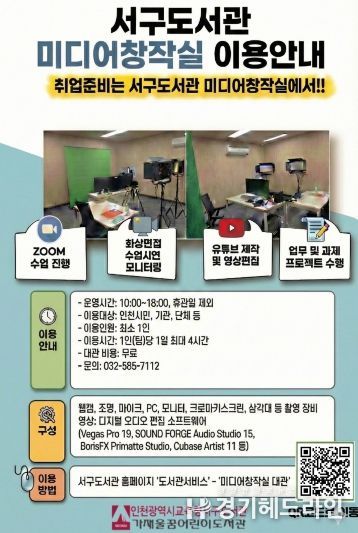 [경기헤드라인=문수철 기자] 인천광역시교육청서구도서관은 지역 주민의 미디어 창작활동을 지원하기 위해 ‘미디어 창작실’을 운영한다고 10일 밝혔다.