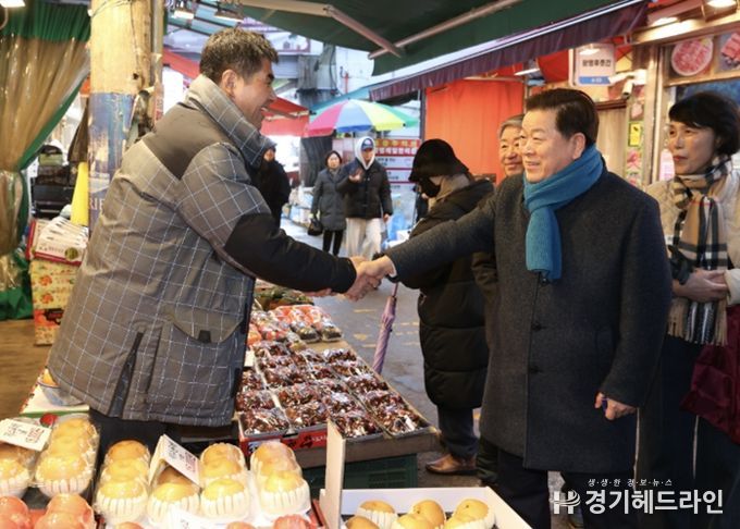 [경기헤드라인=문수철 기자] 박승원 광명시장이 10일 설 명절을 앞두고 광명전통시장을 방문해 물가를 점검하고 현장 목소리를 청취했다.