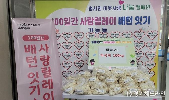 [경기헤드라인=문수철 기자] 의정부시 가능동주민센터는 2월 9일 한국불교태고종 타래사가 떡국떡 100kg를 기탁했다고 밝혔다.