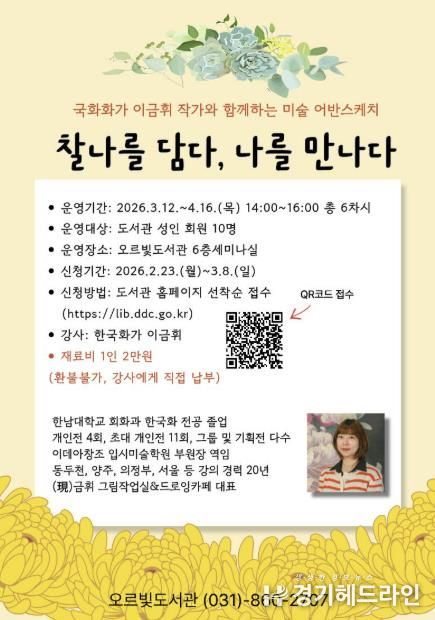 [경기헤드라인=김윤종 기자] 동두천시 도서문화사업소는 오르빛도서관에서 성인 시민을 대상으로 한 시민 교양 프로그램을 운영한다.
