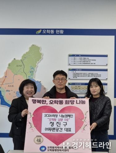 [경기헤드라인=정현수 기자] 여주시 오학동은 ㈜푸른공간 정진구 대표가 지난 10일 오학동 행정복지센터를 방문해 이웃돕기 성금 50만 원을 기탁했다고 밝혔다.
