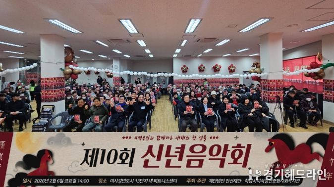 [경기헤드라인=문수철 기자] 2026년 붉은 말의 해 병오년을 맞이하여 하남시미사강변종합사회복지관과 재단법인 진선재단은 지난 6일 ‘제10회 지역주민 신년음악회’를 공동 주최·주관하고, 300명 이상의 지역주민이 참석한 가운데 새해의 힘찬 시작을 알렸다.