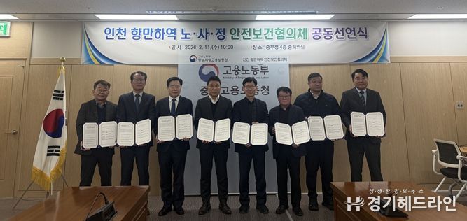 [경기헤드라인=문수철 기자] 중부지방고용노동청은 2월 11일 인천 항만하역 현장의 산업재해 예방과 안전문화 정착을 위해 노동자·사업주·정부가 함께하는 ‘인천 항만하역 노·사·정 안전보건협의체 공동선언식’을 개최했다.