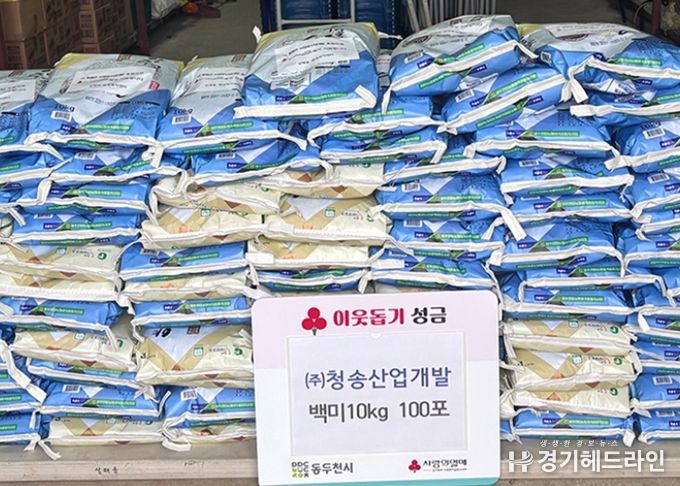 [경기헤드라인=김윤종 기자] 동두천시 상패동 소재 산업폐기물 처리업체 청송산업개발은 지난 11일 설 명절을 맞아 상패동 행정복지센터에 백미 10kg 100포를 기탁했다고 밝혔다.