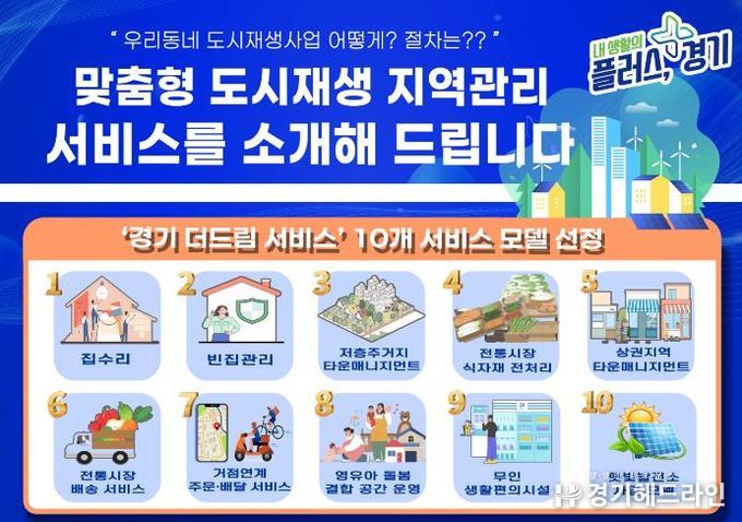 천병문 경기도 도시재생과장은 “이번에 개발한 10개 서비스 모델은 시군이 지역 맞춤형 서비스를 설계하는 데 실질적 가이드라인이 될 것”이라며 “사업종료 이후에도 지속가능한 도시재생이 이뤄질 수 있도록 지원을 아끼지 않겠다”고 말했다.