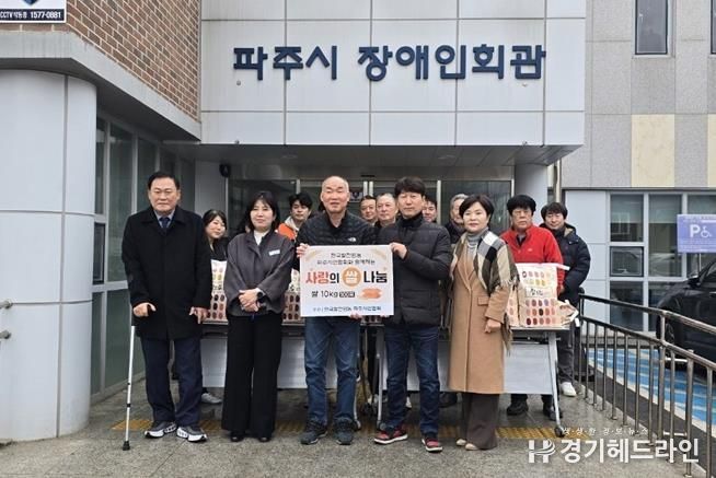 이날 한국쌀전업농 파주시연합회는 파주시장애인연합회에 쌀(10kg) 100포를 전달했으며, 기부된 쌀은 관내 취약계층 장애인 가구에 순차적으로 지원될 예정이다.