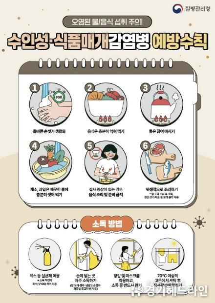 또한 연휴 기간 음식 관리가 소홀해질 경우 수인성·식품매개감염병이 발생할 수 있다. 특히 겨울철에 많이 발생하는 노로바이러스 감염증 환자가 높은 수준을 보이고 있어 각별한 주의가 필요하다. 노로바이러스는 사람 간 전파가 가능하므로 귀가 후와 식사 전에는 30초 이상 비누로 손을 씻고, 음식은 흐르는 물에 세척한 뒤 85℃ 이상에서 1분 이상 충분히 익혀 먹어야 한다. 해외여행 시에도 오염된 식수와 음식 섭취로 세균성 이질, 콜레라 등에 감염될 수 있어 주의해야 한다.