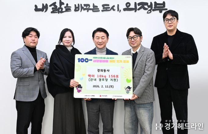 [경기헤드라인=문수철 기자] 의정부시는 2월 12일 지역 봉사와 나눔을 목적으로 결성된 민간 봉사단체 경의동사가 관내 경로당에 백미(10kg 단위) 156포(500만 원 상당)를 기탁하며 ‘100일간 사랑릴레이 배턴 잇기’에 동참했다고 밝혔다.