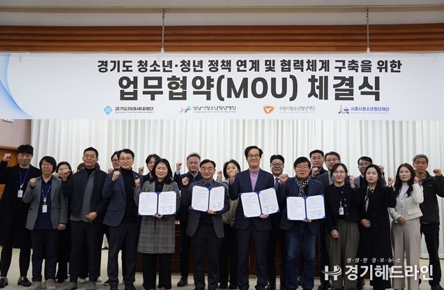 [경기헤드라인=문수철 기자] 수원시청소년청년재단은 2월 12일, 경기도미래세대재단, 성남시청소년청년재단, 시흥시청소년청년재단과 함께 ‘경기도 청년 정책 연계 및 협력체계 구축을 위한 업무협약’을 체결했다.