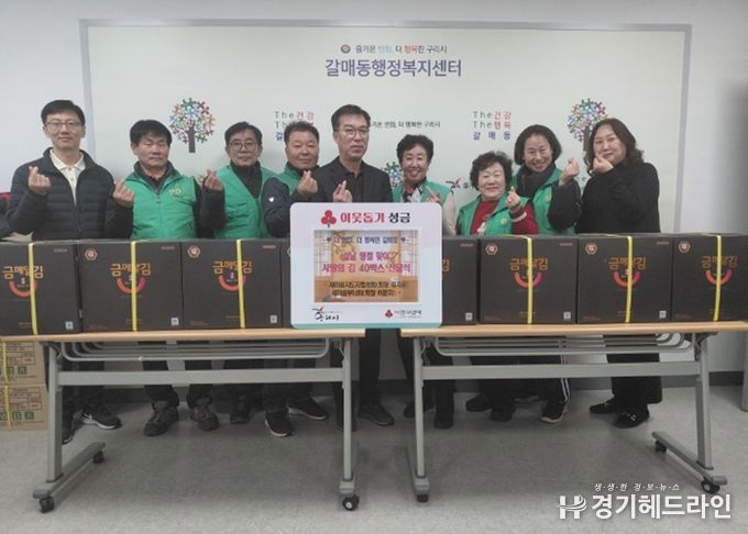 [경기헤드라인=문수철 기자] 구리시는 갈매동 새마을지도자협의회와 새마을부녀회가 지난 12일 오후 2시 갈매동 행정복지센터에서 관내에 거주하는 돌봄 취약계층 40가구에 60만 원 상당의 조미김 40박스를 후원했다고 밝혔다.