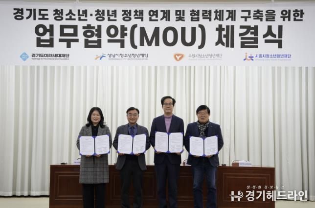 [경기헤드라인=문수철 기자] (재)시흥시청소년청년재단은 지난 2월 12일 경기도청 옛청사 신관 4층 대회의실에서 경기도미래세대재단, 수원시청소년청년재단, 성남시청소년청년재단과 함께 ‘청소년ㆍ청년 정책 연계 및 협력체계 구축’을 위한 업무협약을 체결했다.