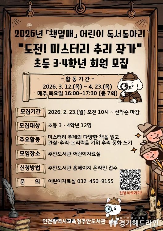 [경기헤드라인=문수철 기자] 인천광역시교육청주안도서관은 오는 23일부터 초등 3~4학년 학생을 대상으로 ‘책열매’ 독서동아리 회원을 모집한다.