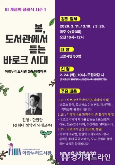 [경기헤드라인=김홍량 기자] 고양특례시 아람누리도서관은 2026년 한 해 동안 서양 음악사를 시대별로 조망하는 연간 기획 프로그램‘이 계절의 클래식’을 운영한다.