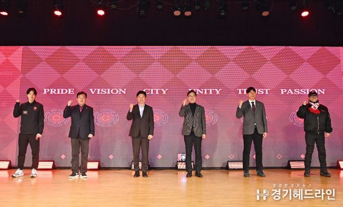 [경기헤드라인=문수철 기자] 부천FC1995가 22일 부천시청에서 2026시즌 출정식을 열고 창단 첫 K리그1 시즌을 앞둔 각오를 시민들과 함께 다졌다. 부천시는 오는 3월 1일 K리그1 개막전을 치르는 구단이 1부리그에서 당당히 경쟁할 수 있도록 지원하는 동시에, 경기 관람과 문화 체험, 소비가 이어지는 ‘스포츠 기반 지역경제 활성화’를 본격화할 계획이다.