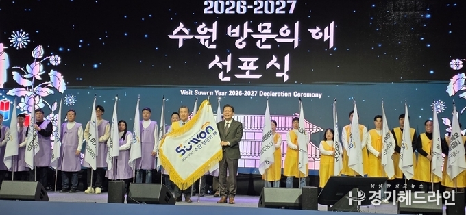 [경기헤드라인=문수철 기자] 이재준 수원특례시장이 24일 “수원의 문을 세계로 활짝 열겠다”며 2026-2027년을 ‘수원 방문의 해’로 공식 선포했다. 수원특례시는 수원컨벤션센터에서 선포식을 열고 수원을 K-콘텐츠를 선도하는 글로벌 문화관광도시로 도약시키겠다는 비전을 제시했다.