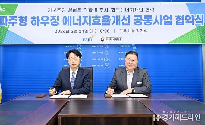 [경기헤드라인=김홍량 기자] 파주시는 지난 24일 한국에너지재단과 ‘기본주거 실현을 위한 파주형 하우징 에너지효율개선 공동사업’업무협약을 체결했다.
