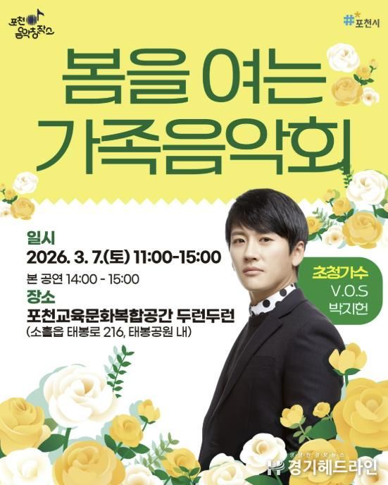 [경기헤드라인=김홍량 기자] 포천시는 오는 3월 7일 포천시 교육문화복합공간 두런두런에서 ‘포천음악창작소, 봄을 여는 가족음악회’를 개최한다.