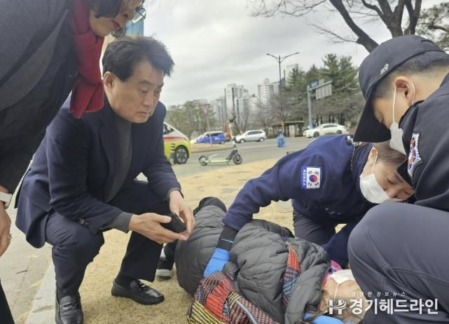 [경기헤드라인=문수철 기자] 하은호 군포시장이 길에 쓰러진 할머니를 발견하고 신속한 신고와 응급처치를 통해 무사귀환을 도와 화제다