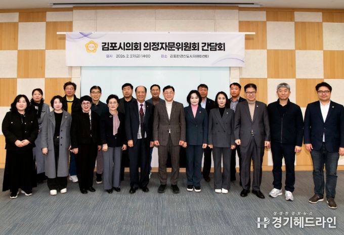 [경기헤드라인=문수철 기자] 김포시의회는 2월 27일 김포한강신도시자원화센터에서 ‘2026년 제1차 의정자문위원회’를 개최했다고 밝혔다. 이번 회의는 각 분야 전문가로 구성된 의정자문위원들과 함께 지난해 의정 운영 성과를 점검하고, 올해 의정활동 방향을 모색하기 위해 마련됐다.