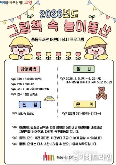 [경기헤드라인=김홍량 기자] 고양특례시 풍동도서관은 어린이 그림책 읽어주기 상시 프로그램 ‘그림책 속 놀이동산’을 운영한다고 5일 밝혔다.