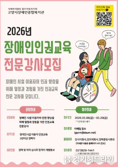[경기헤드라인=김홍량 기자] 고양시장애인종합복지관이 2026년 고양시 장애인시설 이용자 인권교육 수행기관으로 선정됐다고 5일 밝혔다.