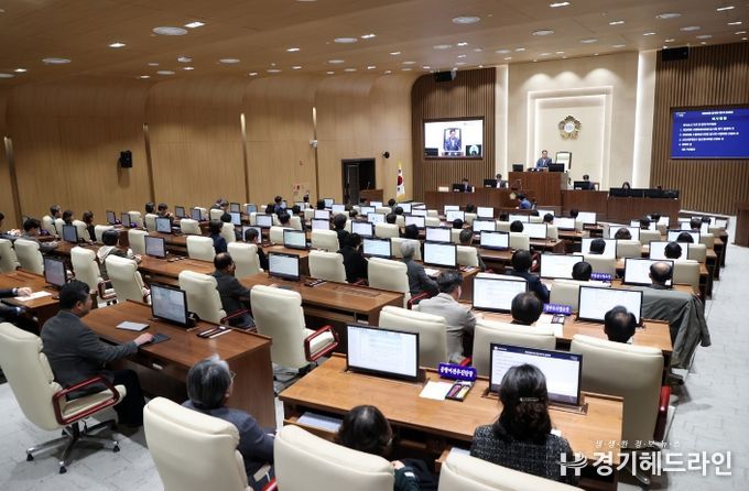 [경기헤드라인=문수철 기자] 수원특례시의회는 5일 본회의장에서 제399회 임시회 제1차 본회의를 열고 8일간의 회기에 들어갔다. 이번 임시회는 3월 5일부터 12일까지 8일간 진행되며, 조례안 등 총 27건의 안건을 심사할 예정이다.