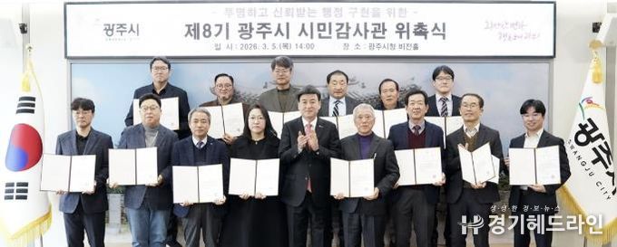 제8기 시민감사관은 총 20명으로, 광주시 거주 시민으로 구성된 명예감사관 5명과 전문 자격 및 실무 경험을 갖춘 전문감사관 15명으로 구성됐다. 임기는 2029년 3월까지 3년이다.