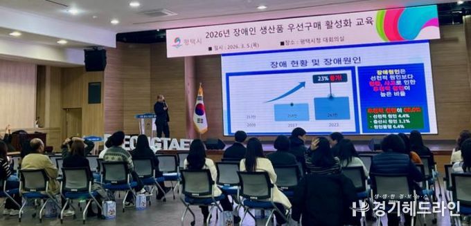 [경기헤드라인=문수철 기자] 평택시는 지난 5일 시청 본관 2층 대회의실에서 평택시 공무원을 대상으로 '2026년 장애인생산품 우선구매 활성화 교육’을 실시했다.