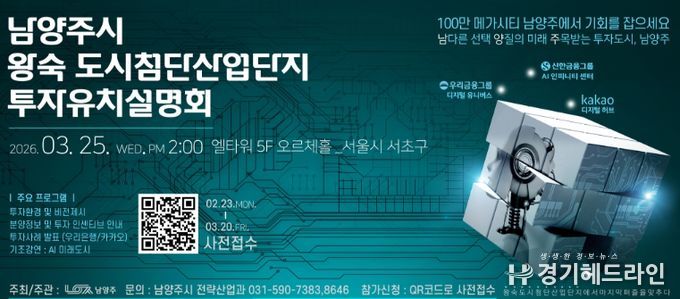 [경기헤드라인=문수철 기자] 남양주시는 오는 25일 서울 서초구 엘타워에서 ‘왕숙 도시첨단산업단지 투자유치설명회’를 개최하고, 첨단산업 투자거점으로 급부상하는 시의 투자환경을 기업에 소개한다고 밝혔다.
