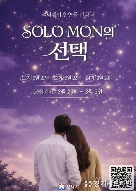 [경기헤드라인=문수철 기자] 성남시가 4년째 진행 중인 미혼 남녀 만남 행사 ‘솔로몬(SOLO MON)의 선택’ 인기가 여전한 것으로 나타났다.