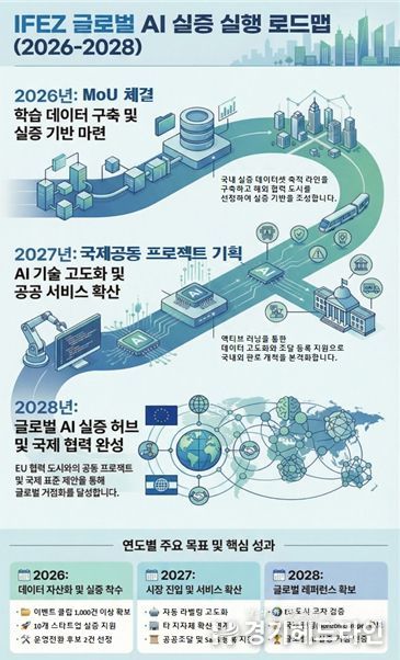 이는 ‘도시가 데이터를 제공하고, 기업이 기술을 고도화하며, 공공이 검증된 AI를 구매하는 구조’를 국제적으로 확산하는 시도다. IFEZ는 2026년 실행형 업무협약(MoU) 체결을 시작으로 2027년 국제 공동 파일럿 기획, 2028년 국제 공동 실증 및 글로벌 AI 실증 허브 구축으로 이어지는 단계적 로드맵을 추진할 계획이다.