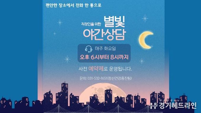 [경기헤드라인=김홍량 기자] 포천시정신건강복지센터는 직장인, 학생, 취업 준비생 등 낮 시간 상담 이용이 어려운 시민들이 보다 편리하게 마음건강 상담을 받을 수 있도록 ‘야간 마음건강 상담서비스(별빛 야간 상담)’를 운영한다.