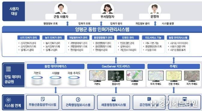 또한 통합 인허가시스템은 기존 허가 자료의 분야별 저장·관리 기능뿐 아니라 개인정보 관리 기능을 강화하고, 지도 기반 통합 행정 정보 조회 기능을 추가해 보다 효율적인 행정 지원이 가능하도록 설계된다. 향후에는 양평군의 독자적인 인공지능 기반 데이터 조회 기능을 추가해 인공지능 시대에 부응하는 스마트 행정 시스템으로 구축될 전망이다.