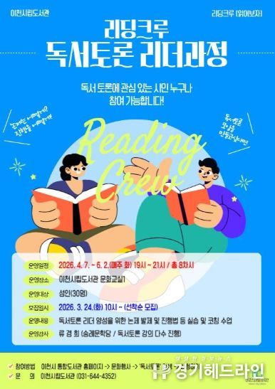 [경기헤드라인=정현수 기자] 이천시립도서관이 시민이 함께 읽고 나누는 새로운 독서 프로젝트 ‘리딩크루 : 함께읽기’를 시작한다.