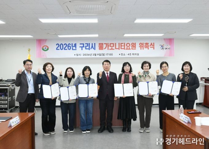 [경기헤드라인=문수철 기자] 구리시는 지난 9일 시청 4층 회의실에서 지역 물가 안정과 공정한 소비 환경 조성을 이끌어갈 ‘2026년 신규 물가 모니터 요원 위촉식’을 개최했다.