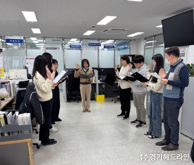 [경기헤드라인=문수철 기자] 구리시 교문1동 행정복지센터는 지난 9일 민원인에게 더 친절하고 책임감 있는 행정서비스를 제공하기 위해‘민원 친절 다짐 선언’을 실시했다.