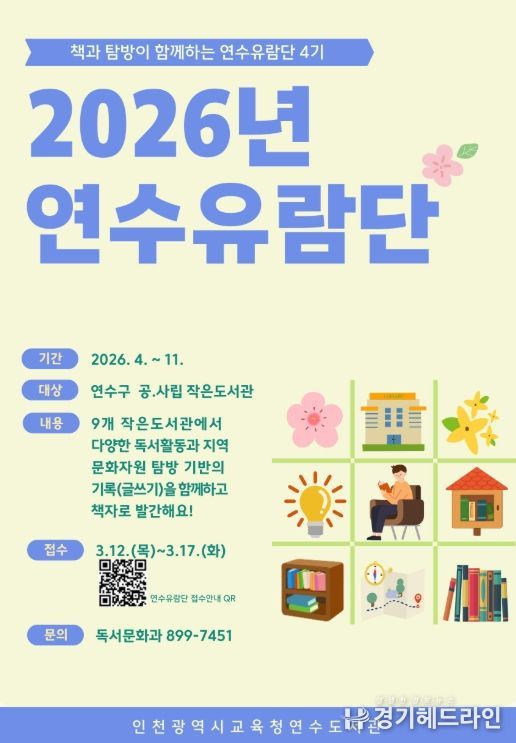 [경기헤드라인=문수철 기자] 인천광역시교육청연수도서관은 12일부터 연수구 소재 작은도서관을 대상으로 지역 연계 프로그램인 ‘연수유람단’ 참여기관을 모집한다.