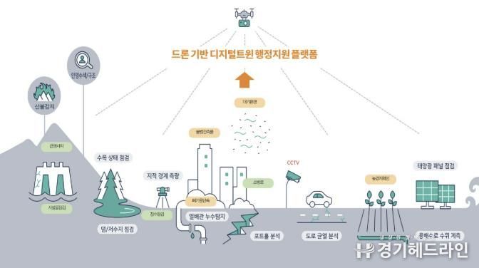 드론 활용 공공서비스 사업은 고정밀 3차원 공간정보에 인공지능 분석 모델을 개발해 농경지 이용 현황, 하천 준설량, 산사태 위험 분석 등 데이터 기반 행정에 활용할 계획이다.