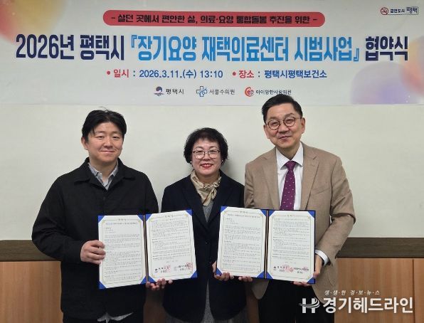 [경기헤드라인=문수철 기자] 평택시는 지난 11일 의료서비스 접근성을 높이고 지역사회 의료·통합돌봄 체계 강화를 위한 장기요양 재택의료센터 시범사업 업무 협약을 체결했다고 밝혔다.