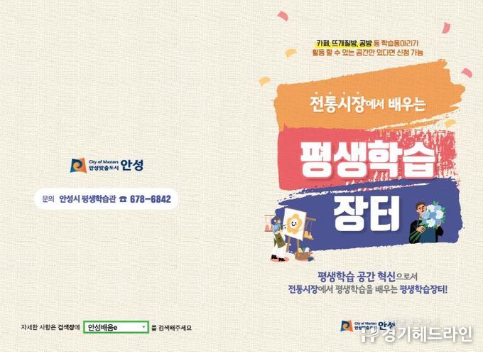 [경기헤드라인=문수철 기자] 안성시는 오는 3월 23일부터 전통시장 내 유휴공간을 평생학습 공간으로 조성하는 ‘평생학습장터’ 학습공간과 지정 된 공간에서 평생교육 프로그램을 운영할 학습동아리를 모집한다.