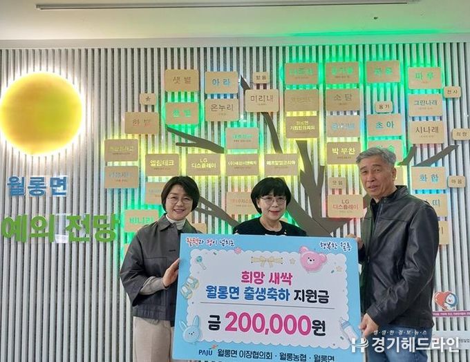 [경기헤드라인=김홍량 기자] 파주시 월롱면 이장협의회는 지난 17일 2025년 4분기 중 월롱면에서 태어난 출생아 가정에 1인당 20만 원의 ‘월롱 하나로마트 상품권’을 전달했다.