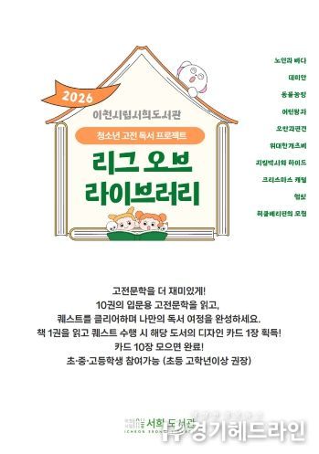 [경기헤드라인=정현수 기자] 이천시 서희도서관은 청소년 독서문화 확산을 위해 3월 21일부터 청소년 고전독서 프로젝트를 새롭게 운영한다.