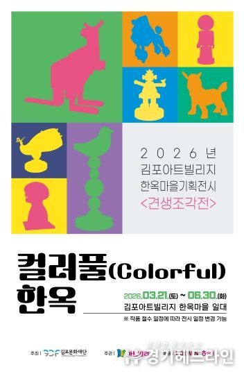 [경기헤드라인=문수철 기자] (재)김포문화재단(대표이사 이계현) 오는 3월 21일부터 6월 30일까지 김포아트빌리지 한옥마을 야외공간에서 기획전시 '견생조각전' ‘컬러풀(Colorful) 한옥’을 개최한다고 밝혔다.