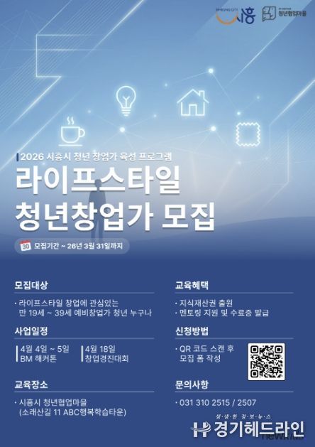 [경기헤드라인=문수철 기자] 시흥시는 ‘2026 청년 창업가 육성 프로그램’의 일환으로 라이프스타일 분야 예비 청년창업가를 대상으로 실전형 창업 프로그램인 ‘창업 해커톤’과 ‘창업 경진대회’를 운영하고, 오는 3월 31일까지 참가자 30명을 모집한다.