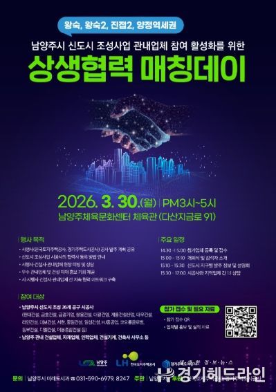 시 관계자는 “이번 자리를 통해 시행사·건설사와 관내 기업이 서로를 신뢰할 수 있는 파트너로 인식하는 자리가 되길 바란다”며 “남양주가 성장하는 만큼 우리 지역 기업도 함께 성장할 수 있도록 행정적 가교 역할을 끝까지 수행하겠다”고 전했다.