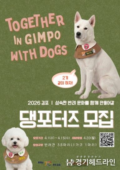 [경기헤드라인=문수철 기자] 김포시는 올바르고 책임 있는 반려문화 확산을 이끌 ‘김포 댕포터즈’를 모집한다고 밝혔다.