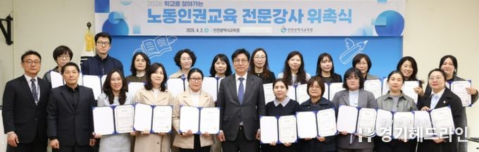 [경기헤드라인=문수철 기자] 인천광역시교육청은 2일 학생들이 노동의 가치를 배우고 인권 감수성을 함양할 수 있도록 돕는 ‘2026학년도 학교로 찾아가는 노동인권교육 전문강사단’ 위촉식을 개최했다.