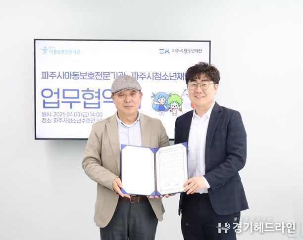 [경기헤드라인=김홍량 기자] (재)파주시청소년재단과 파주시아동보호전문기관은 파주시 아동 및 청소년의 건강한 성장과 복지 증진을 위해 상호 협력하는 업무협약(MOU)을 체결했다고 밝혔다.