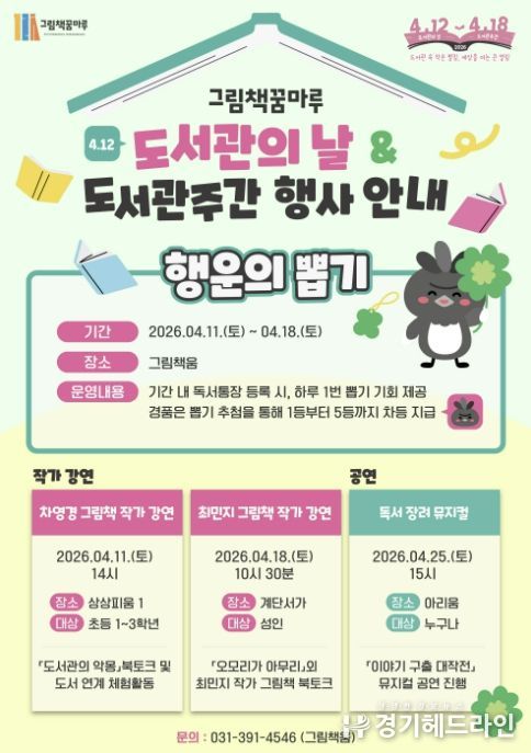 [경기헤드라인=문수철 기자] 군포 그림책꿈마루는‘도서관의 날(4월 12일)’을 맞아 이용자 누구나 참여할 수 있는 다양한 문화 프로그램을 운영한다고 밝혔다.